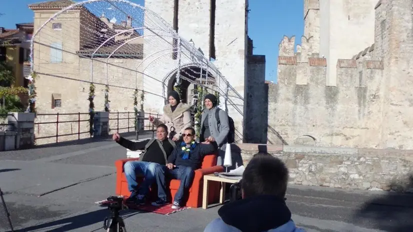 Piace il divanetto rosso di «Quelli del divano». I quattro amici vicentini che hanno inventato questa singolare quanto simpatica iniziativa hanno fatto il pieno a Sirmione. Il divano rosso piazzato in largo Ghoete, proprio a ridosso delle mura merlate del castello e del ponte d’ingresso al centro storico, ha suscitato grande curiosità.