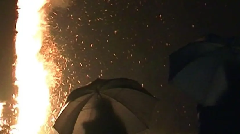 La fitta pioggia caduta durante tutto il giorno ha costretto il parroco ad annullare la tradizionale processione in cui la statua e le reliquie di San Vincenzo Martire, adagiati su un carro ornato di fiori, vengono portate per le vie del borgo. La cerimonia si è aperta con la Messa vespertina, celebrata da don Francesco Bertoli che, subito dopo, si è recato sul luogo del falò con una torcia, ha benedetto il traliccio di sterpaglie, alto 21 metri, e gli ha dato fuoco.