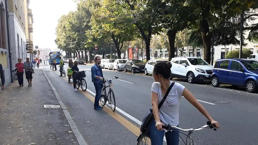 Succede in diversi luoghi della città, ad esempio, davanti al liceo Calini, dove i genitori in attesa dei figli occupano lo spazio riservato alle due ruote senza troppo preoccuparsi. Succede da anni, da quando c’è la ciclabile, e proprio qui l’associazione ambientalista ha dato vita questa mattina a un flash mob per chiedere interventi in materia.