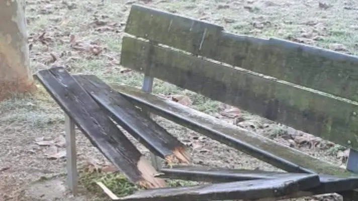Una delle panchine prese di mira dai malviventi a Borgosatollo - © www.giornaledibrescia.it