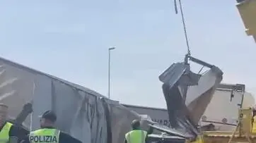 Tir perde una bobina di ferro sull'A4, traffico in tilt