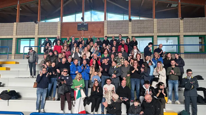 All’interno del palazzetto sportivo oltre trecento concittadini hanno tifato per lui dagli spalti: «Lo accoglieremo con una grande festa», ha detto il vicesindaco
