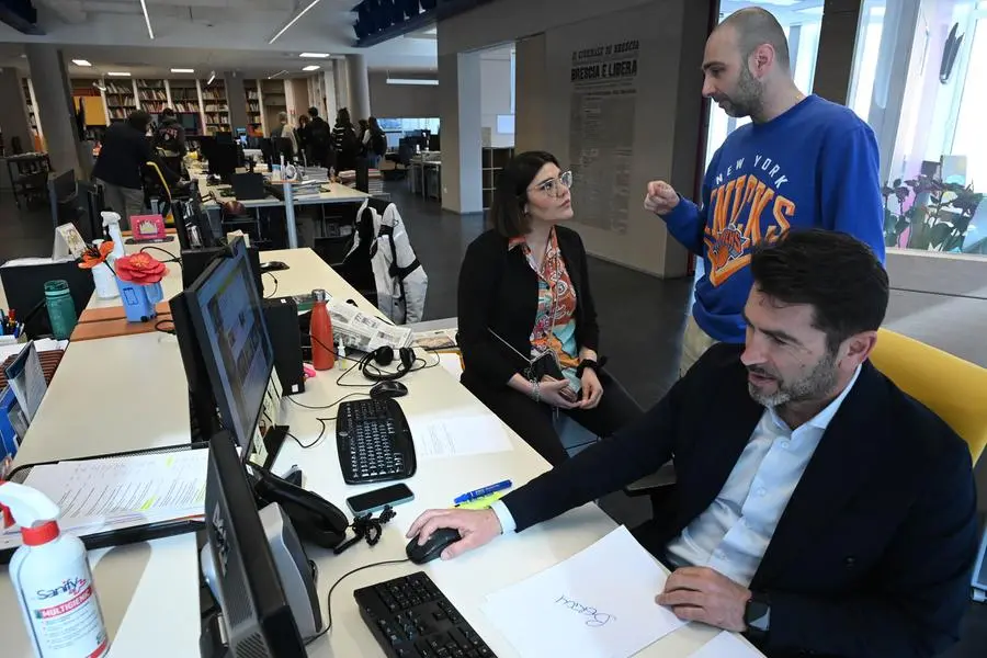Si entra «bucando» un muro di parole. Parole appoggiate leggere alla vetrata d’ingresso, come fossero in attesa di essere lette, dette, ascoltate. È la soglia della casa dell’Editoriale Bresciana, dove convivono giornale, tv, radio, web insieme a tanti altri settori meno visibili ma altrettanto vitali ed essenziali. Le parole sono la materia prima di questo mestiere: scritte, pronunciate, accompagnate da foto e da video. Sono sostanza, respiro quotidiano.