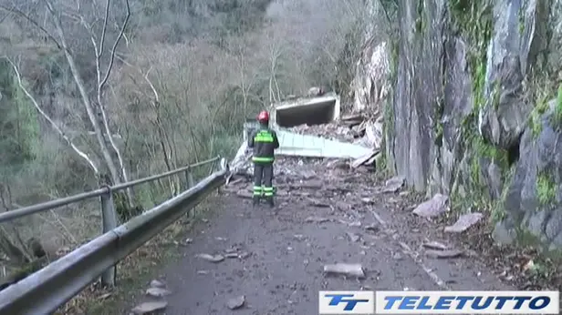 Il crollo nella notte di Santo Stefano tra Dossello e Sonvico. Per raggiungere le frazioni bisogna andare a Passabocche. La causa dell’accaduto pare sia stata l’imprevedibile fenomeno del crioclastismo