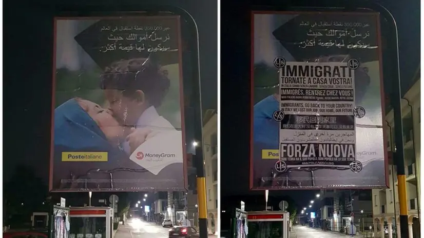 Un oltraggio al quale per i rappresentanti di Forza Nuova era necessario rispondere con un blitz. Qualche notte fa incaricati del partito hanno coperto le affissioni pubblicitarie di Moneygram e Poste Italiane con manifesti che invitano, in più lingue, gli immigrati «a tornarsene a casa loro. In Italia siamo senza lavoro, senza casa, senza futuro». E ancora: «Ogni terra ha il suo popolo, ogni popolo ha la sua terra».