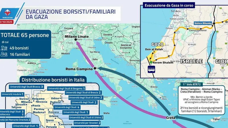 Venticinque studenti e nove familiari si sono fermati a Roma, mentre gli altri si sono diretti Milano, sempre a bordo dell’Atr 72 della Guardia di Finanza. Ad accoglierli a Ciampino, in rappresentanza del Governo, il ministro degli Esteri Antonio Tajani e il ministro dell’Università e della ricerca Anna Maria Bernini, che si è recata oggi in Giordania per accompagnarli in Italia.
