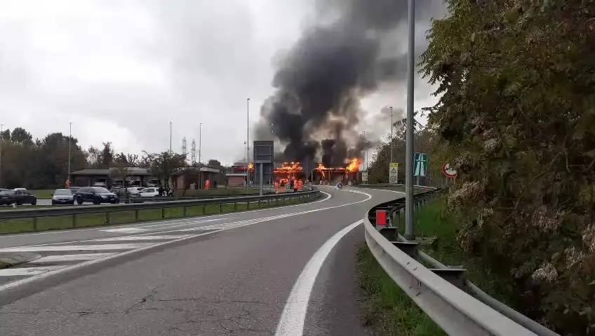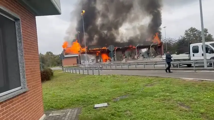 A fuoco il casello autostradale di Brescia Sud
