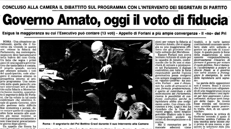Le elezioni del novembre 1991 rivelarono una nuova forza in campo: la Lega di Bossi, primo partito che per 72 voti superava la Dc, attorno al 24%. Il Psi al 10 %, poco sotto stava il Pds. Persino L’Osservatore Romano commentò: «Un vero e proprio pronunciamento contro l’apparato dei partiti».