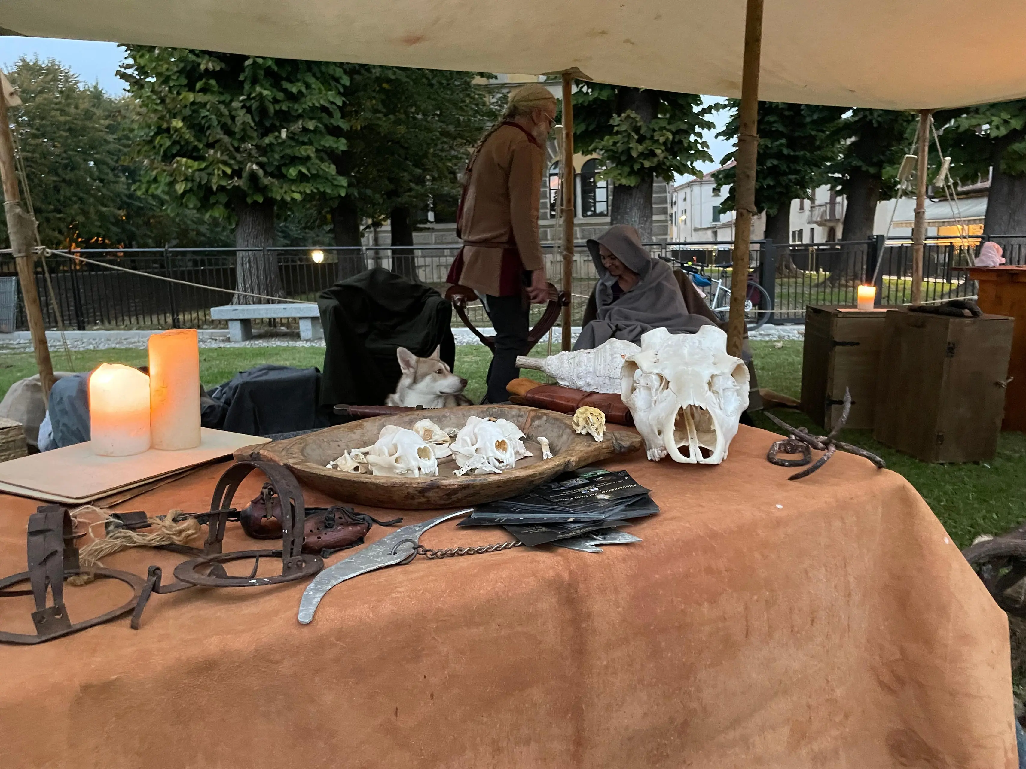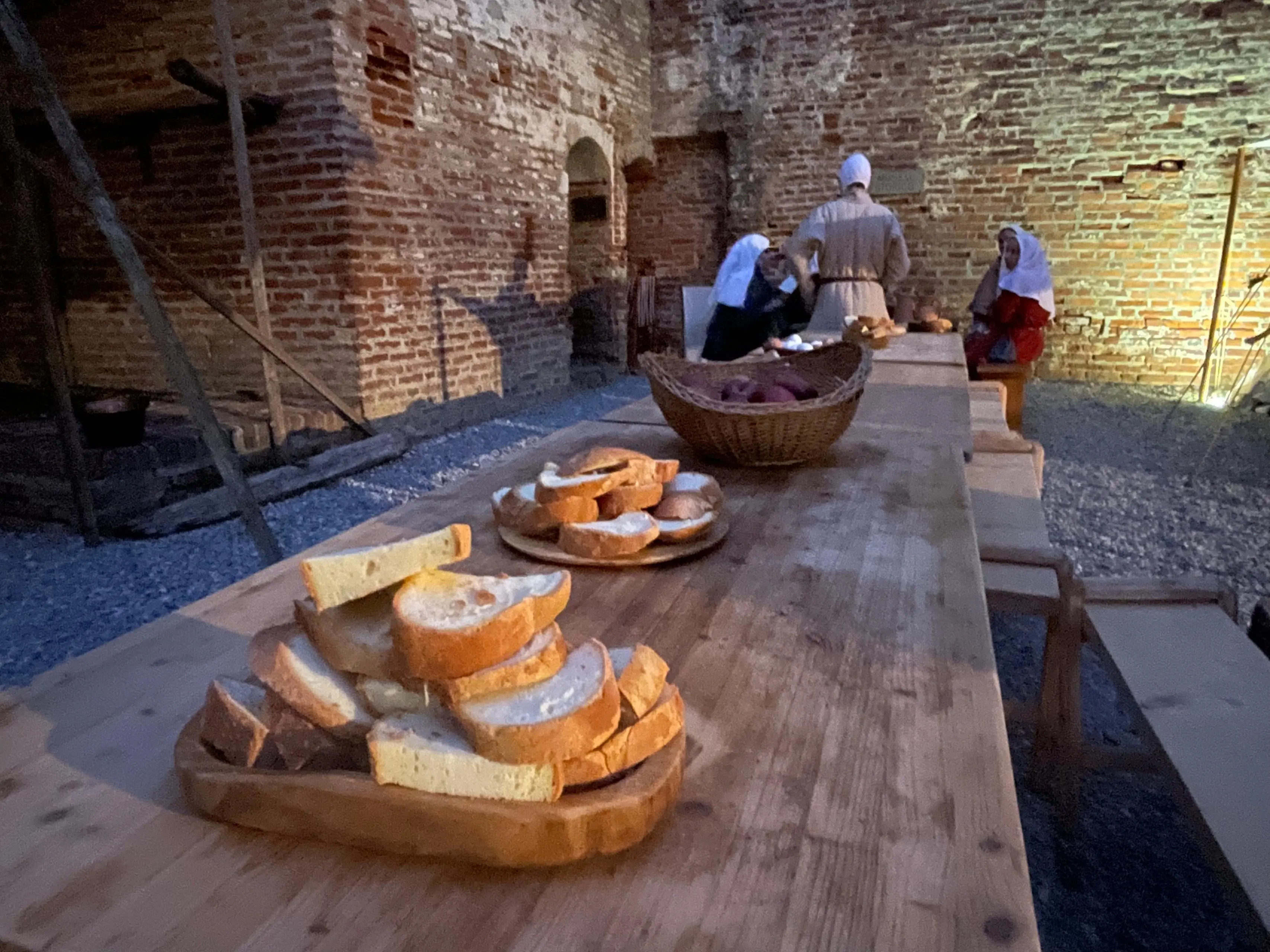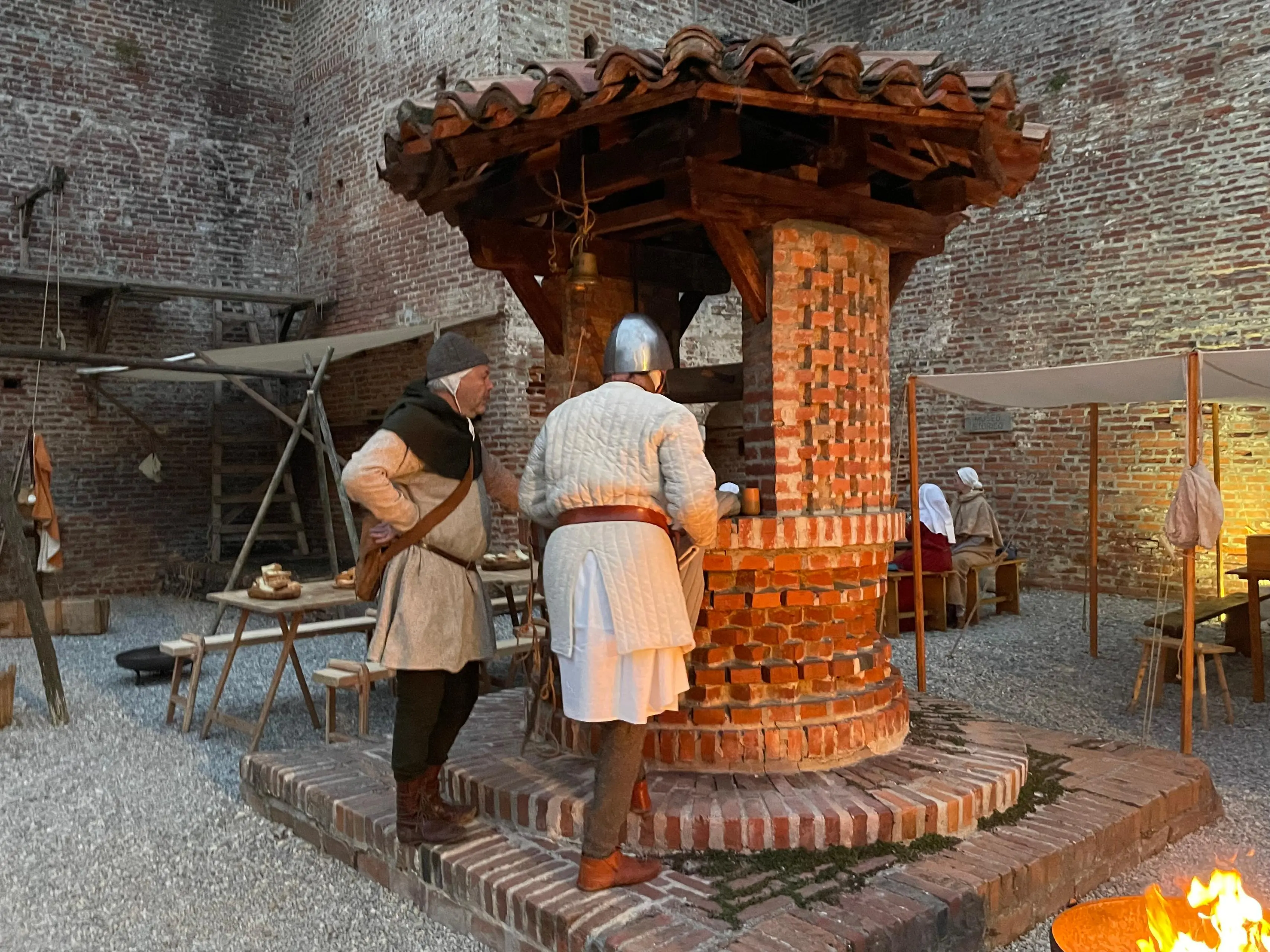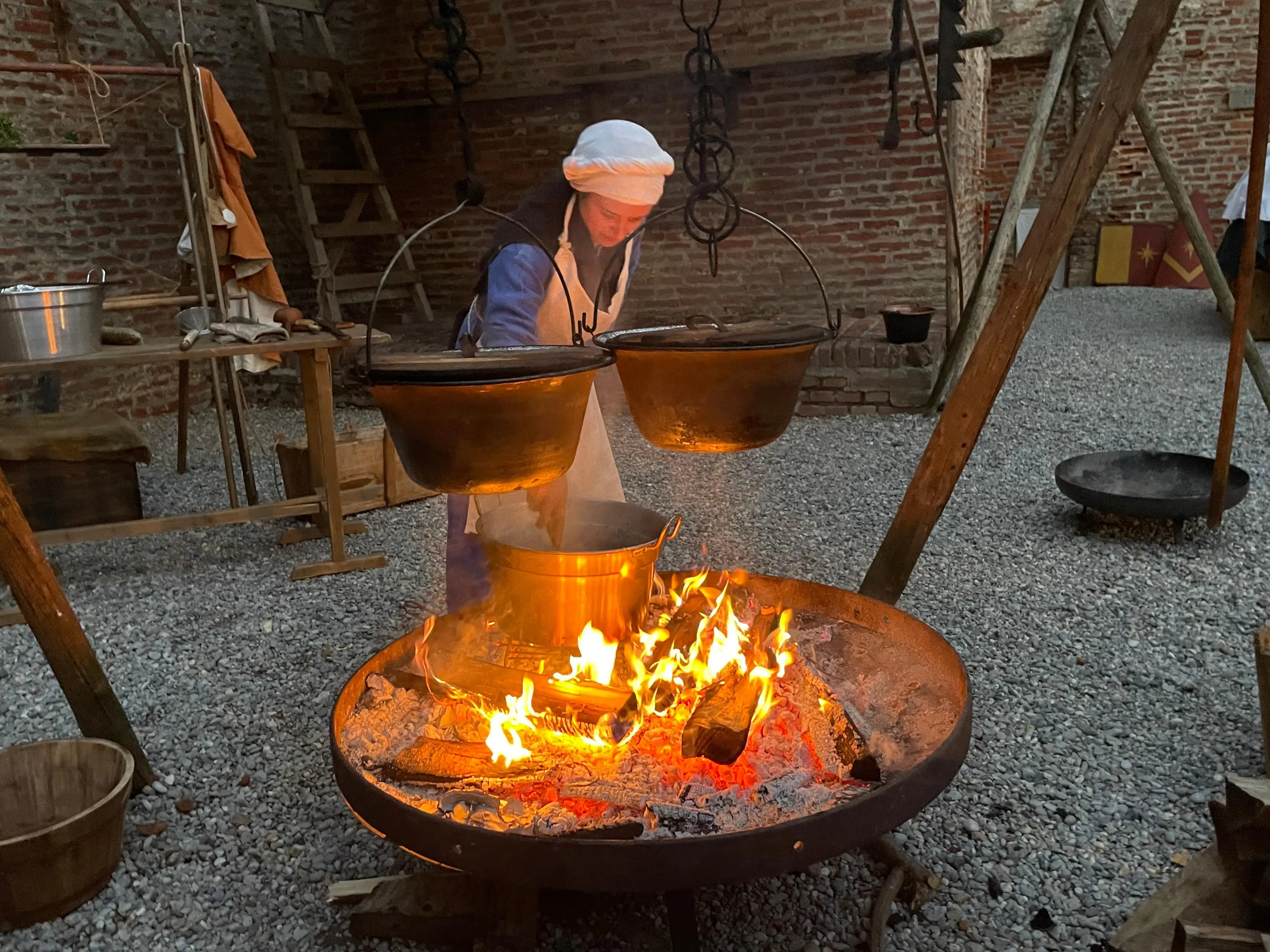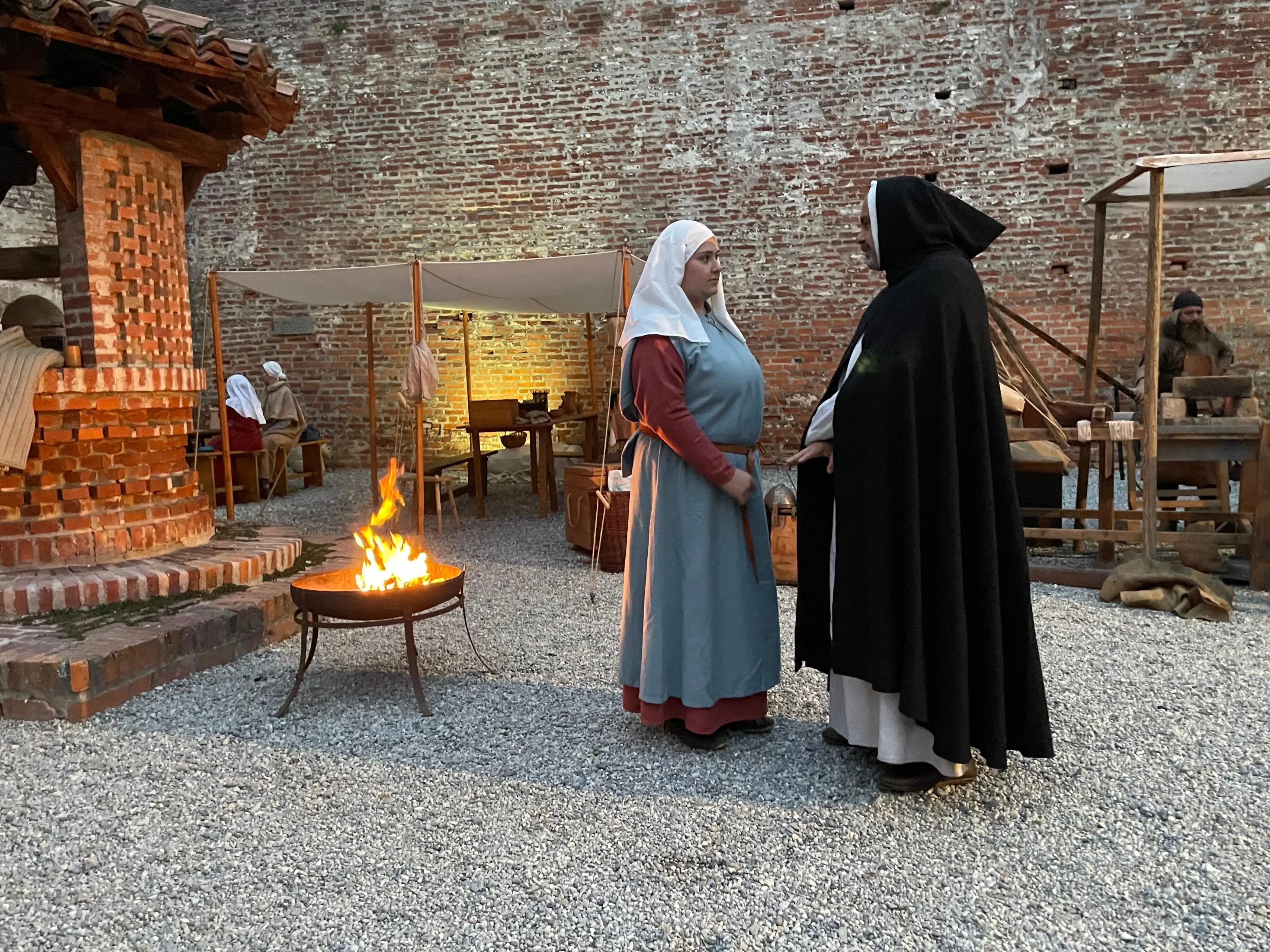 Chi ha varcato il ponte levatoio si è trovato immerso in un grande accampamento medievale. Tante le scene di vita quotidiana: fuochi accesi sotto pentoloni di rame dove sono state cotte zuppe e carni; banchi di fabbri che hanno forgiato ferro rovente e hanno attizzato la brace con grandi mantici; mercanti che hanno mostrato pelli e trappole da caccia, alchimisti circondati da ampolle e vasi di spezie; scrivani chini su pergamene illuminati da candele e tanto altro.