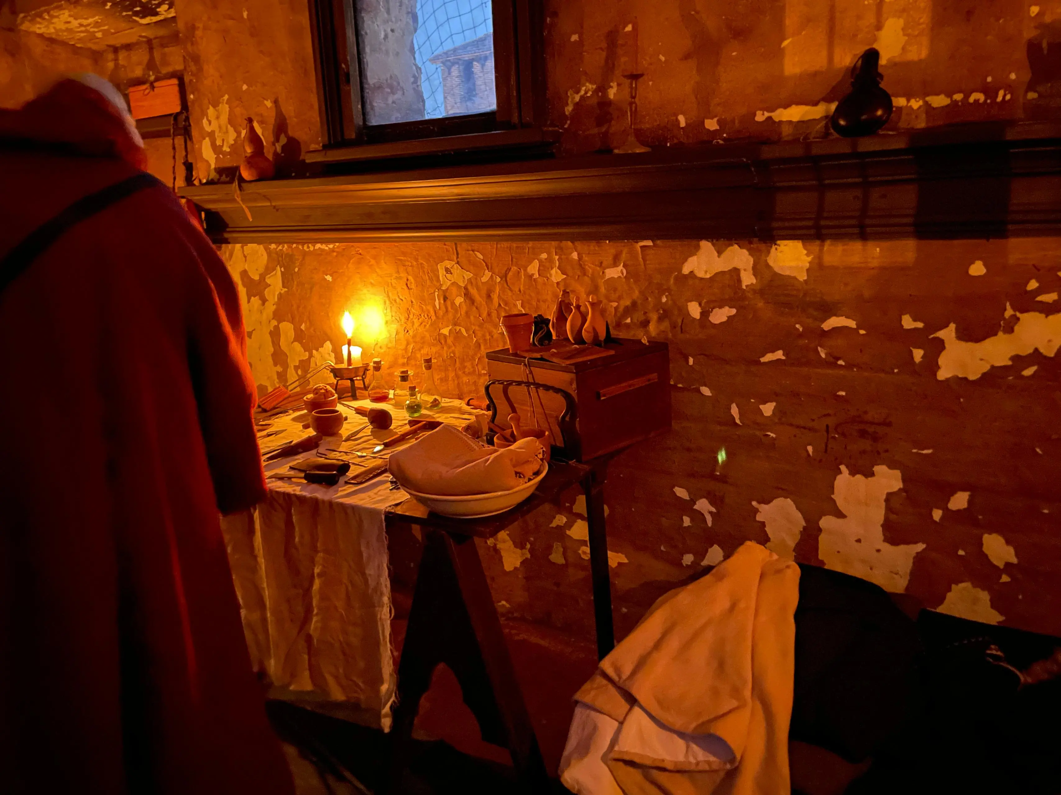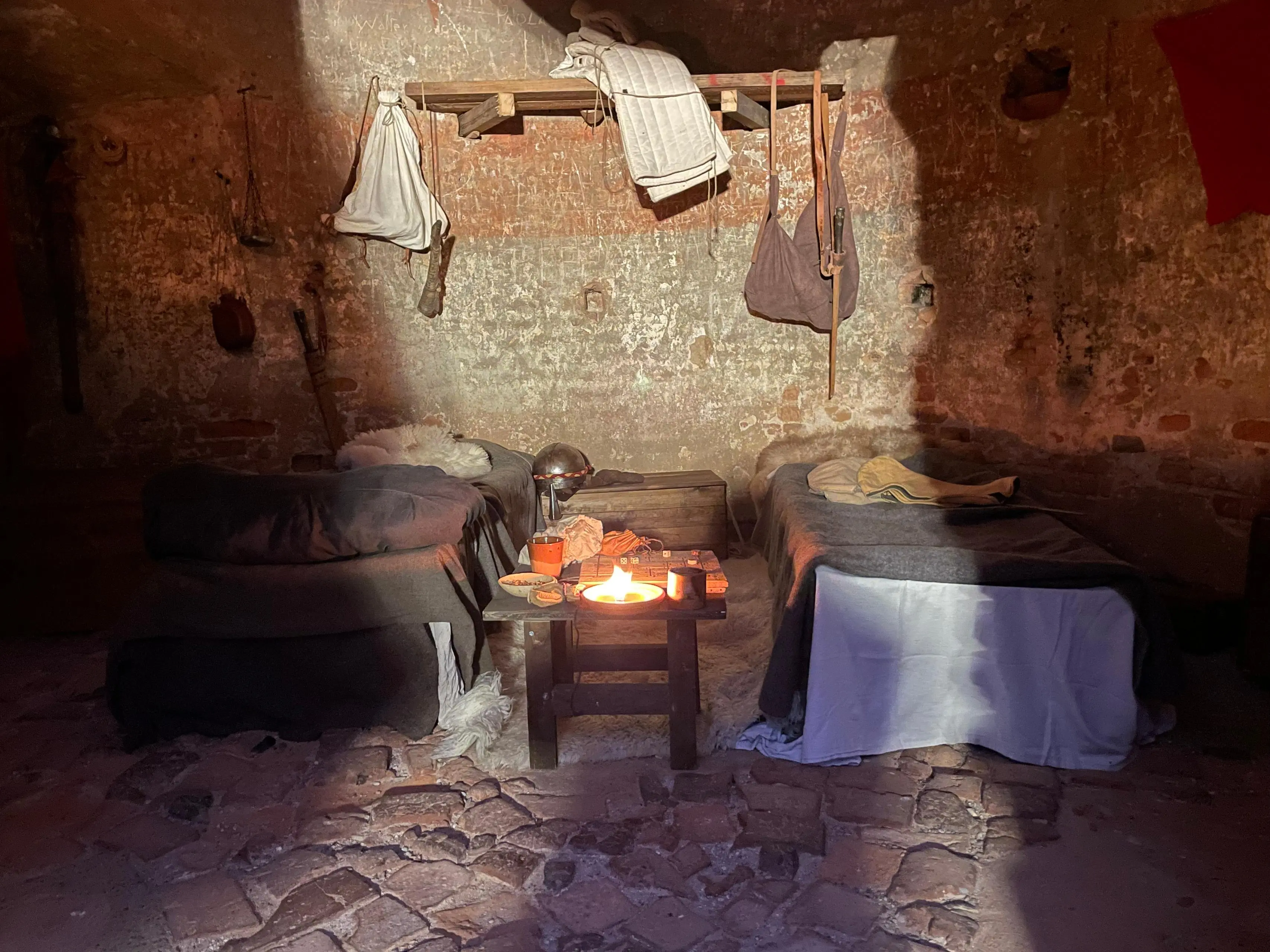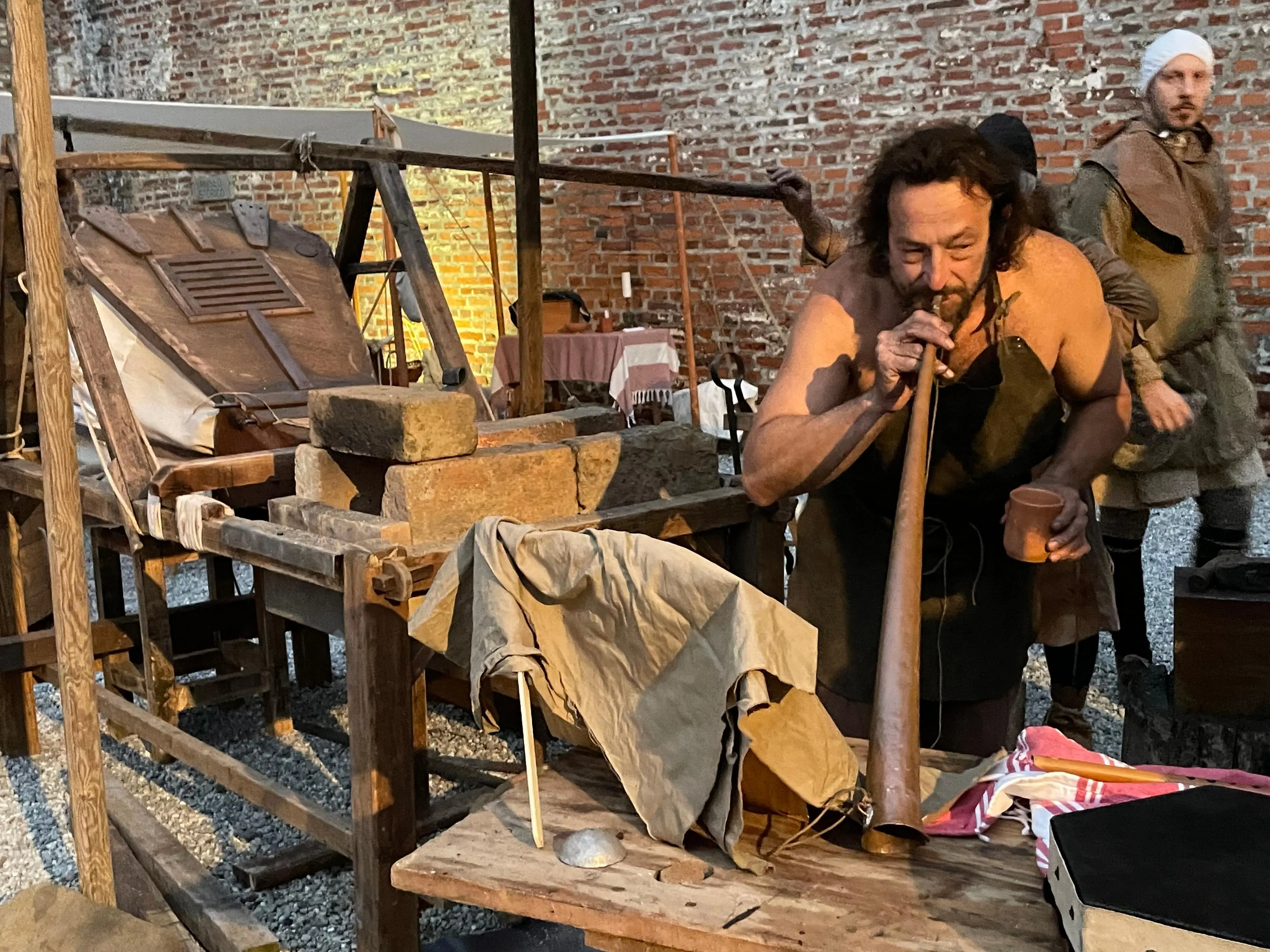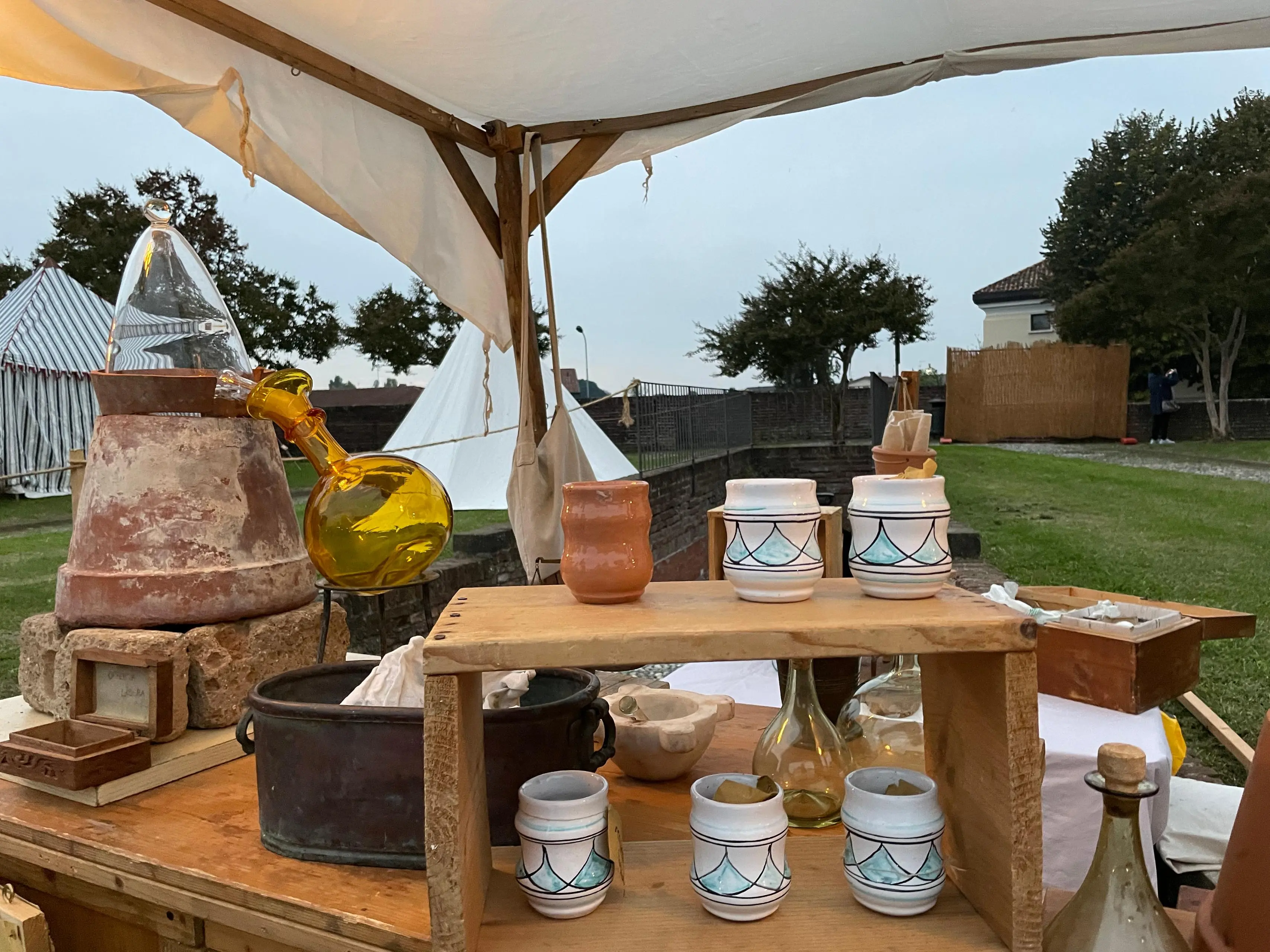 Chi ha varcato il ponte levatoio si è trovato immerso in un grande accampamento medievale. Tante le scene di vita quotidiana: fuochi accesi sotto pentoloni di rame dove sono state cotte zuppe e carni; banchi di fabbri che hanno forgiato ferro rovente e hanno attizzato la brace con grandi mantici; mercanti che hanno mostrato pelli e trappole da caccia, alchimisti circondati da ampolle e vasi di spezie; scrivani chini su pergamene illuminati da candele e tanto altro.