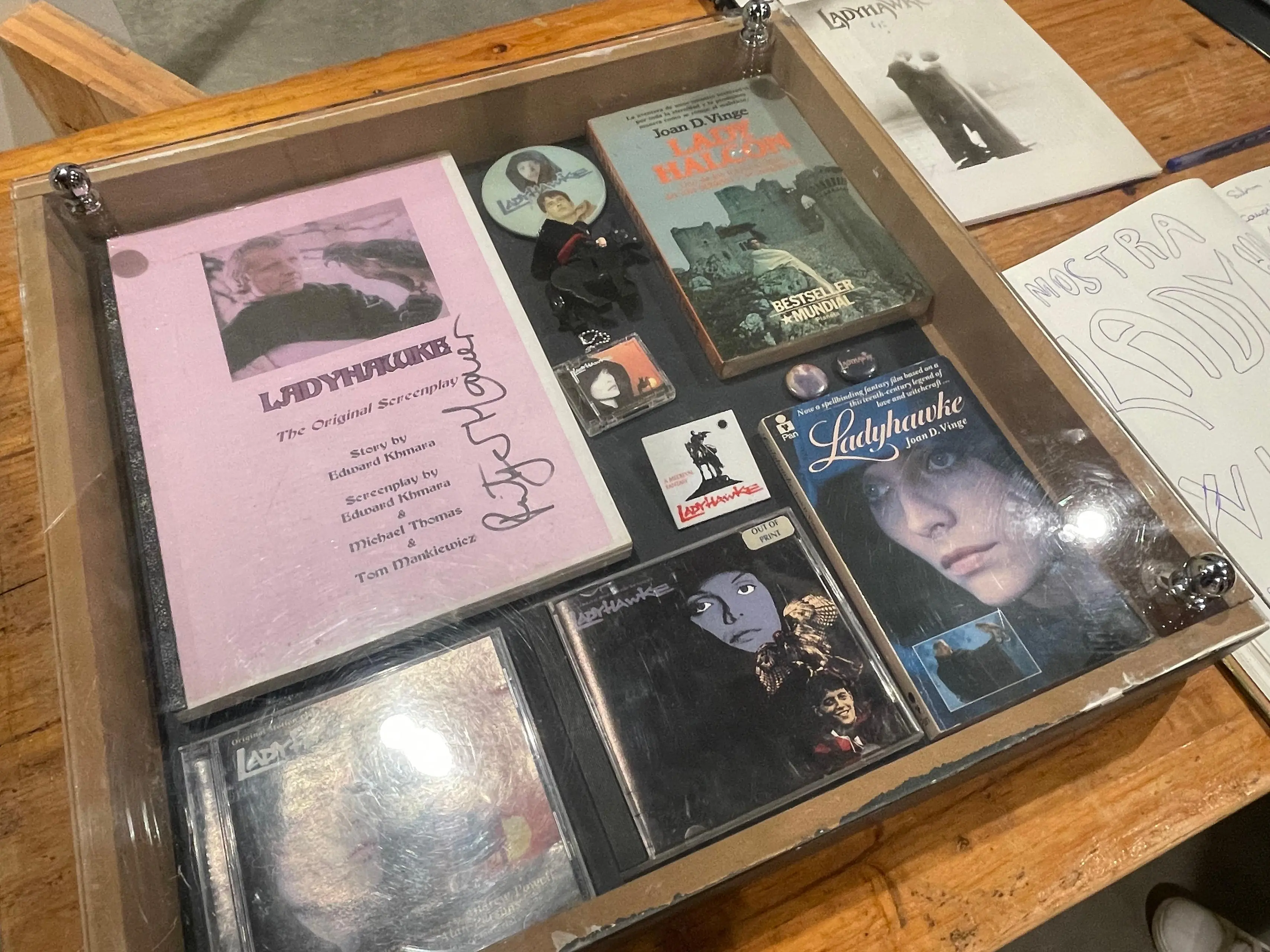 L’atmosfera è stata intensa e partecipata, e di notte è diventata ancora più suggestiva grazie al calore delle torce e delle fiamme sulle mura. Il cuore della celebrazione, come anticipato, è stato dedicato a «Ladyhawke», con una mostra che ha raccolto foto di scena, costumi e memorabilia legati al film, compresi copioni e vecchie edizioni della colonna sonora. Molti visitatori hanno potuto rivedere le immagini di Michelle Pfeiffer e Rutger Hauer nei panni di Isabeau e Navarre, tornare con la memoria alla maledizione che li separa – lei falco di giorno e donna di notte, lui lupo di notte e uomo di giorno – e scoprire che proprio qui sono state girate alcune sequenze, ascoltando il racconto di quei giorni da parte di chi ha preso parte alle riprese come comparsa.