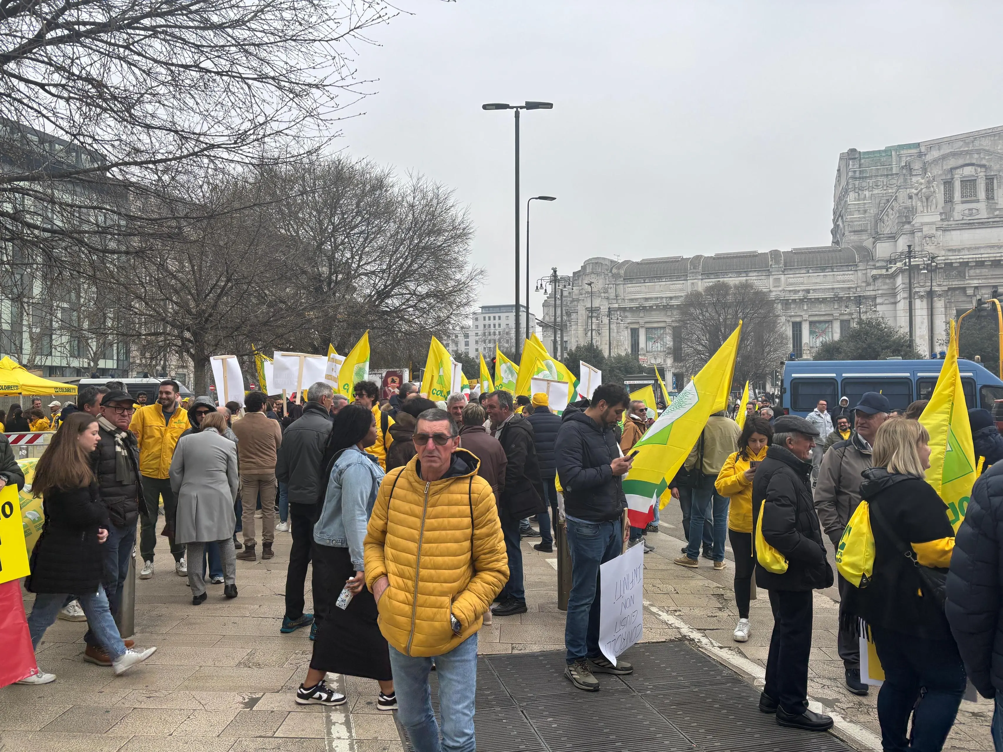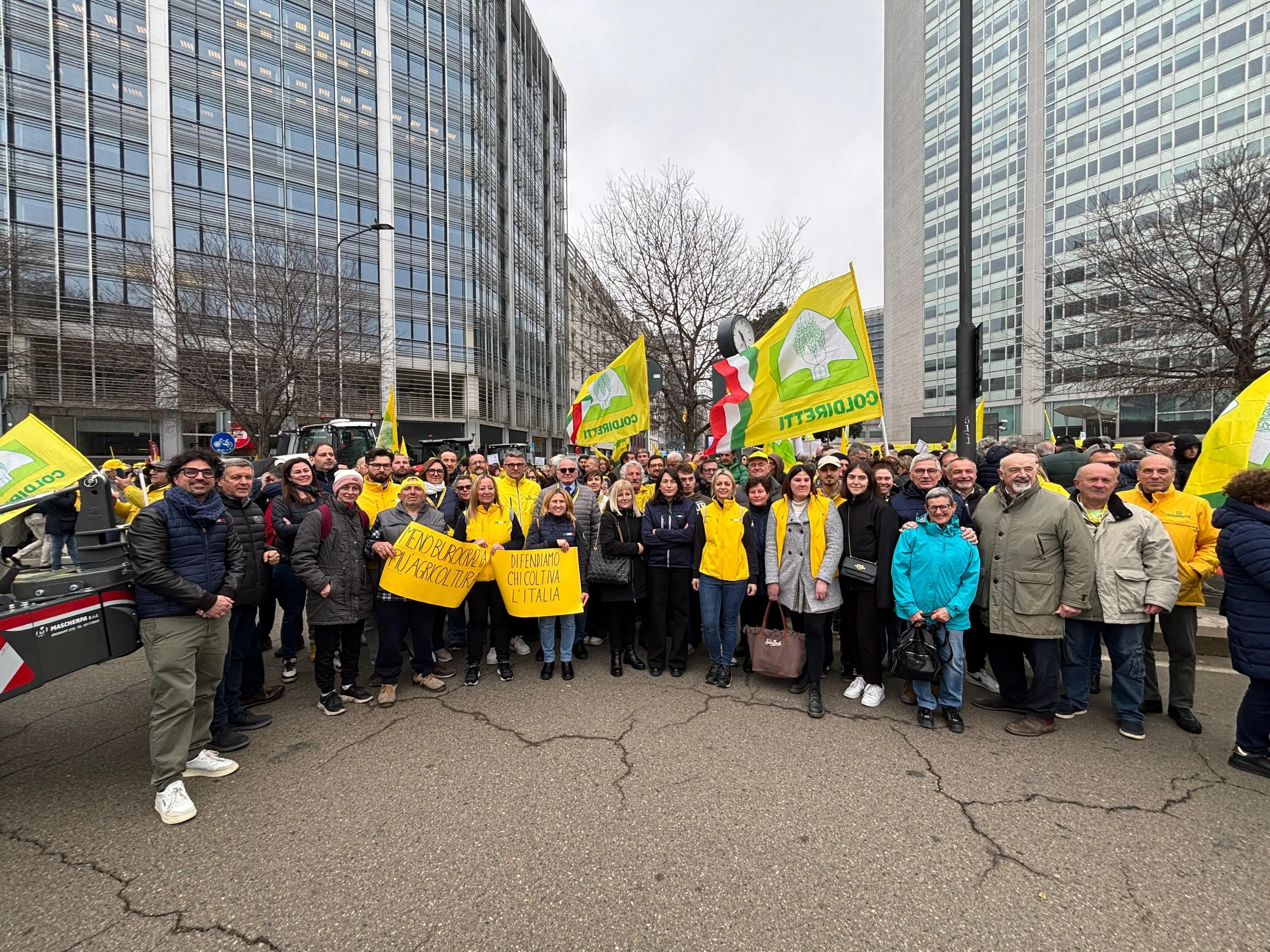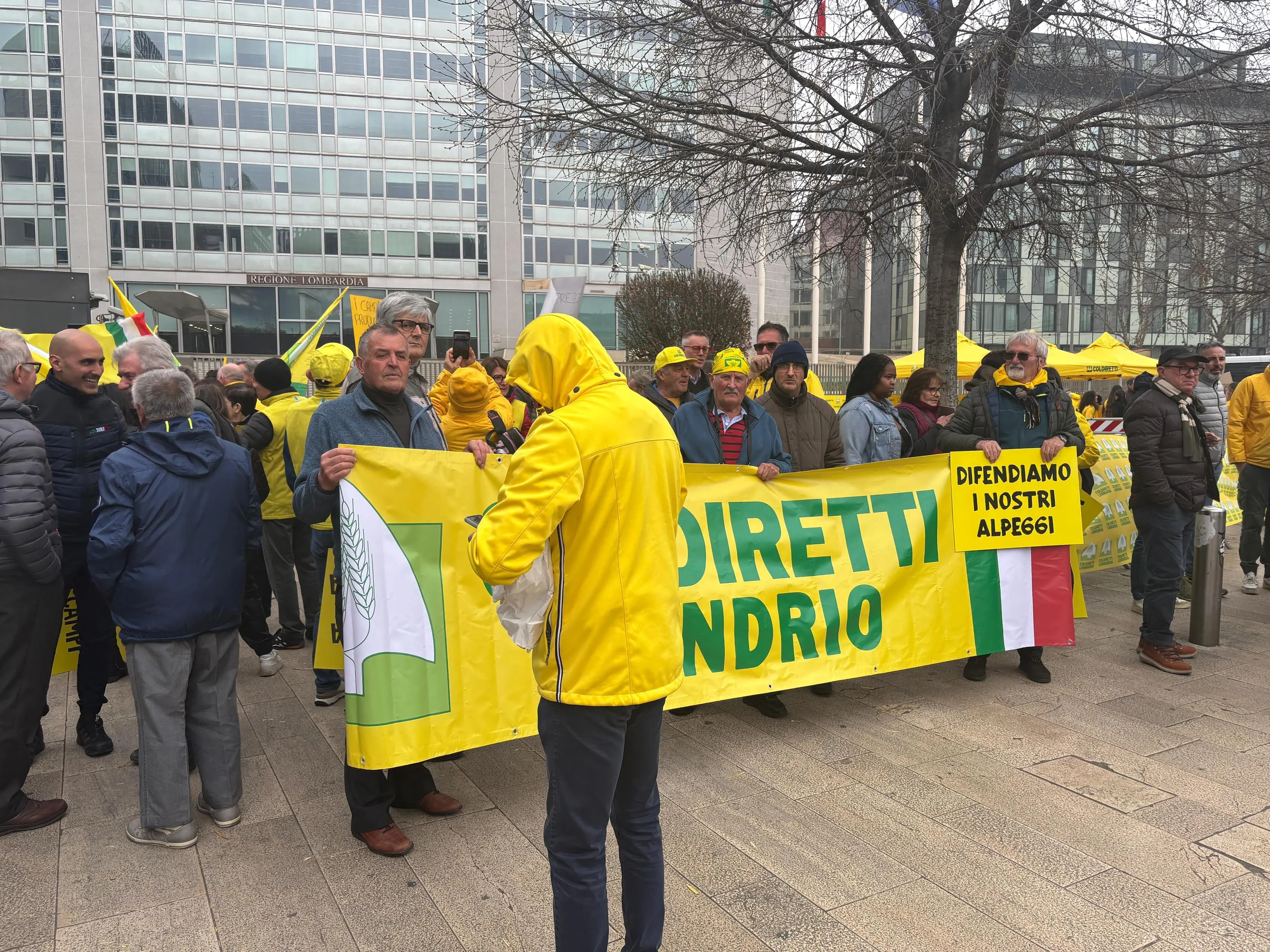 Bandiere gialle, striscioni e gli immancabili trattori per difendere un’agricoltura oggi «sotto scacco». È con questo slogan che migliaia di agricoltori della Coldiretti si sono ritrovati questa mattina davanti al Pirellone, in piazza Duca d’Aosta, a Milano, per chiedere interventi urgenti a sostegno delle imprese agricole e denunciare l’aumento dei costi che sta mettendo sotto pressione le aziende del settore.