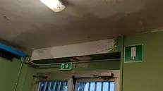 L'acqua che piove dal soffitto nella palestra del Tartaglia