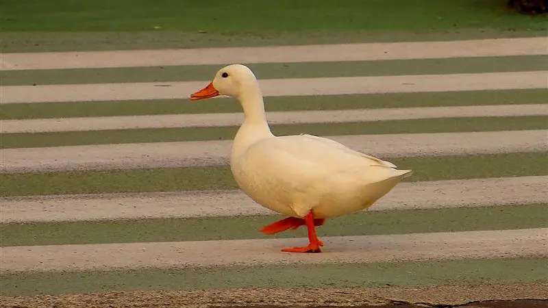 Un germano bianco è uscito dall'acqua e si è diretto speditamente verso il centro zampettando sulle strisce pedonali