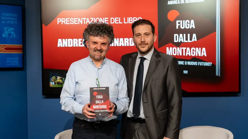 (Arv) Venezia, 19 febbraio 2026 Oggi, presso la sala Stampa ‘Oriana Fallaci’ di palazzo Ferro Fini, il Capogruppo della Lega- LV, Riccardo Barbisan, ha presentato il libro ‘Fuga dalla montagna. Elogio funebre o nuovo futuro?’, Edizioni DBS, 130 pagine, anno 2025, dialogando con l’autore, Andrea De Bernardin, già Sindaco di Rocca Pietore, in prima linea nell’affrontare la Tempesta Vaia del 2018, nato e vissuto in Marmolada.
