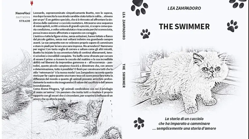 “The swimmer. La storia di un cucciolo che ha imparato a camminare”diLea Zampadoro, pubblicato dalGruppo Albatros Il Filo, racconta la vicenda di Leonardo, chiamato con affetto Buetto, un gattino nato con lasindrome dello “swimmer”, nota anche come “cucciolo nuotatore”. Fin dai primi giorni il suo corpo cerca il movimento, e gli arti non riescono ancora a sostenerlo nel modo atteso. L’autrice parte da un dato clinico e lo trasforma in un racconto di cura, di squadra, di progressi costruiti con pazienza. La storia si muove sul crinale più vero: quello in cui l’amore desidera proteggere e, nello stesso tempo, deve imparare a intervenire con metodo.
