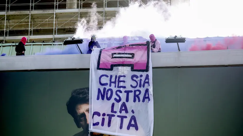 MILANO, 08 MAR - "Disarmiamo guerra e patriarcato" è il grande striscione con cui si è aperto il corteo organizzato da Non una di meno in occasione dell'8 marzo a Milano. Un corteo a cui hanno partecipato almeno diecimila persone che da piazza Duca d'Aosta sono arrivate a piazza Fontana con cartelli contro la guerra e anche contro il ddl Buongiorno. Un grande poster con scritto 'Senza consenso è stupro, senza dissenso è fascismo' è stato affisso al grattacielo Pirelli, sede del Consiglio regionale. Sulle vetrine di un locale vuoto, sono stati attaccati manifesti con il simbolo di Microsoft e la scritta molestatore, con il simbolo di Tesla ma a testa in giù e altri sugli Epstein secret, e uno con Trump a testa in giù e la scritta 'Make Fascist Afraid Again', ovvero fate che i fascisti abbiano ancora paura. Alcuni dei manifestanti, dell'ala antagonista, sono entrati nel cantiere e saliti sul Pirellino, l'ex edificio venduto dal Comune al gruppo Coima che rientra nella maxi inchiesta sull'urbanistica, e hanno srotolato uno striscione con scritto: "Viva gli spazi sociali. Occupiamola, che sia la nostra città".