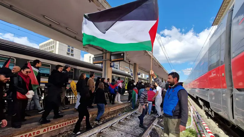 PERUGIA, 03 OTT - Sono entrati nella stazione di Perugia alcuni dei partecipanti alla manifestazione di solidarietà per la Flotilla. Si sono quindi spostati sui binari con bandiere e lanciando slogan. La manifestazione si sta svolgendo comunque senza incidenti. Anche il corteo di Terni è sfilato davanti alla stazione senza però entrare nello scalo.