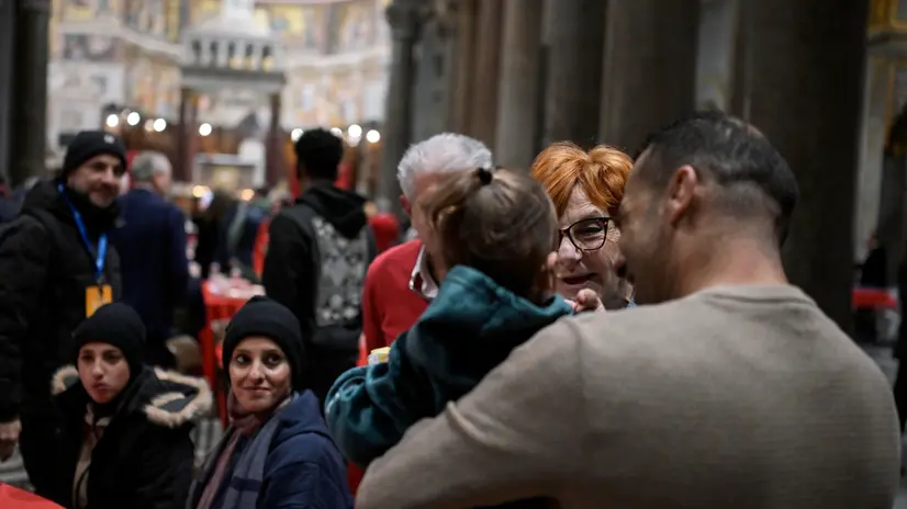 ROMA, 25 DIC - Il mondo, così come dovrebbe essere: seduti a tavola, felici di stare insieme anche se di diversa origine e con diverse, e spesso difficili, storie alle spalle. E' il Natale di Sant'Egidio nella basilica di Santa Maria in Trastevere, immagine di ciò che si è vissuto non solo a Roma, ma con la partecipazione di 80mila persone in un centinaio di città in Italia e con 250mila in una settantina di paesi del mondo. Tavole addobbate a festa, sorrisi, abbracci, regali personalizzati e la serenità di chi si sente in famiglia. Senza dimora, anziani, famiglie in difficoltà, rifugiati venuti con i corridoi umanitari, alcuni salvati dal dramma umanitario di Gaza, si sono seduti a tavola con chi ogni giorno dell'anno li aiuta ed è loro amico. Per quasi due ore hanno parlato e fatto festa con il menù della tradizione: lasagne, polpettone, lenticchie e panettone. "In questo Natale nessuno è anonimo ma tutti sono conosciuti, in una famiglia che non dimentica nessuno. Per chi non ha voce, per chi non ha casa, ritrovarsi qui insieme rafforza la speranza ed è il messaggio di pace di cui oggi il mondo ha bisogno", ha detto Andrea Riccardi partecipando al pranzo. Perché, come ha commentato il presidente della Comunità, Marco Impagliazzo, "questa giornata si unisce a tutti i giorni dell'anno in cui Sant'Egidio è accanto a chi è in difficoltà, a chi vive per strada, ma anche a chi viene da lontano e ha bisogno di accoglienza e di integrazione". Alla fine del pranzo il sindaco di Roma, Roberto Gualtieri, ha portato il saluto della città: "Vi ringrazio per quello che fate non solo oggi ma durante tutto l'anno per una città accogliente, in cui nessuno sia lasciato solo o escluso. Che questo Natale porti la speranza e la pace per i tanti paesi segnati dal flagello della guerra". E il parroco di Santa Maria in Trastevere, don Marco Gnavi, ha presentato alcuni ospiti. Come Sofia, 92 anni: "Partecipo da 30 anni a questo pranzo e posso testimoniare l'amore di questa comunità trasmettendolo a tutti voi". O come il piccolo Nidal, che viene da Gaza e ha imparato a memoria una filastrocca di Gianni Rodari che ripete a tutti con grande convinzione: "Ci sono cose da non fare mai, né di giorno né di notte, né per mare né per terra, ad esempio la guerra". Presenti anche altre persone che vengono da paesi dominati da conflitti, come il Sudan, la Somalia e l'Afghanistan, ex senza fissa dimora che ora hanno trovato una casa in cui vivere e Anoir, originario del Marocco, che da poco ha ottenuto la cittadinanza italiana, "Insieme - ha concluso don Gnavi - abbiamo festeggiato il Natale ma anche un futuro più felice per tutti, per una città più umana e una vita piena di sogni". Tutti i pranzi di Sant'Egidio sono realizzati grazie al sostegno gratuito dei volontari e al numero solidale 45586 (attivo fino al 27 dicembre). Numerose le iniziative in programma anche nei prossimi giorni, per tutto il periodo natalizio, con distribuzione di pasti e regali anche nelle carceri, come a Roma, domani 26 dicembre, a Rebibbia e a Regina Coeli.