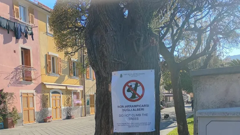 GENOVA, 04 APR - Dopo il divieto di stendere i panni e il divieto di sputare per terra (e altri 97 divieti dello stesso genere ricompresi in una ordinanza sindacale del 2025) , arriva il divieto di arrampicarsi sugli alberi. Sestri Levante, la 'città dei due mari' si prepara ad accogliere un'ondata di turismo e proprio oggi, alla vigilia della Pasqua, sugli alberi della piazza sono comparsi i cartelli "Non arrampicarsi sugli alberi" inchiodati ai tronchi dei lecci, robusti alberi utilizzati spesso nelle zone verdi cittadine con un grosso tronco che non offre appigli tanto che per la cura della chioma e la potatura gli esperti utilizzano tecniche di free climbing. Sul resto della passeggiata a mare si trovano cespuglietti di pitosforo e alberelli di tamerici, sui quali, anche volendo, arrampicarsi risulta tanto inutile quanto impossibile. "Il sindaco deve pensare che siamo delle scimmie" ha commentato un sestrese appena visti i cartelli che riportano il divieto in italiano e in inglese. Cartelli che offrono anche la spiegazione del motivo per cui non ci si può arrampicare sui lecci: "Questo segnale indica che non ci si può arrampicare sugli alberi perché il ramo si può spezzare e voi cadreste battendo la testa".