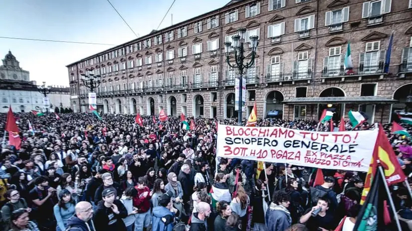 TORINO, 02 OTT - Sono almeno diecimila i pro Palestina che si sono ritrovati in piazza Castello, davanti alla Prefettura a Torino e sono partiti in corteo verso le 19.15. È l'ultimo degli appuntamenti di una giornata di mobilitazione contro il blocco israeliano alla Global Sumud Flotilla. "Gaza ha vinto nonostante il dolore" si legge nello striscione - che apre il corteo - dell'Associazione dei palestinesi in Italia. "Dobbiamo bloccare la catena di morte che parte anche da qui", dicono al microfono. "Questa non è più solo una battaglia contro il genocidio, ma contro questo governo. Un governo che usa i nostri soldi per finanziare la guerra e non per la sanità. Ieri ci hanno dato dei violenti, questa è la loro violenza di fronte al genocidio", aggiungono.