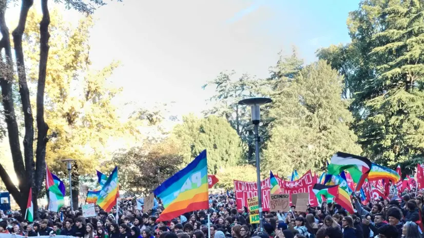 TRENTO, 03 OTT - Migliaia di persone sono scese in piazza a Trento per lo sciopero generale indetto da Cgil, Usb, Cub e Sgb per Gaza e in solidarietà con la Global Sumud Flotilla. La partenza del corteo da piazza Dante è stata ritardata per una discussione in merito a chi lo aprirà, con i sindacati da una parte e gli studenti - che sono scesi in piazza anche ieri - e il Centro Sociale Bruno dall'altra. "Non abbiamo bisogno di bandiere di rappresentanza altrui, quello che ci rappresenta oggi sono le bandiere palestinesi", hanno detto gli studenti ai microfoni.