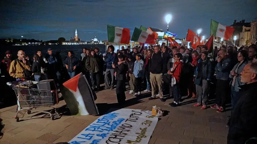 VENEZIA, 02 OTT - Centinaia di persone si sono radunate a Venezia nei pressi del monumento alla Partigiana, in riva dei Sette Martiri, nel sestiere di Castello, per manifestare solidarietà alla Global Sumud Flotilla, i cui attivisti sono stati abbordati e arrestati la notte scorsa dalla marina militare di Israele, mentre erano in navigazione verso la costa di Gaza. Molti i giovani, in gran parte studenti, ma anche adulti e militanti dell'Anpi e Rifondazione Comunista, con striscioni e bandiere, che hanno risposto all'appello lanciato dal Cso Morion per un presidio a sostegno dello sciopero generale per la Palestina indetto per domani, venerdì 3 ottobre, dalla Cgil e dai sindacati di base. Alcuni attivisti presenti hanno lanciato un appello per partecipare al blocco del traffico sul ponte translagunare, che collega Venezia alla terraferma, previsto domattina. Il corteo poi si è mosso per raggiungere il presidio del personale sanitario per Gaza, davanti all'ospedale civile.