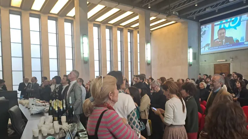 MILANO, 23 MAR - "Ora possiamo cominciare a respirare", dice un magistrato, sorridendo con soddisfazione e uscendo dalla sala affollata della sezione milanese dell'Anm, riferendosi al caldo e all'aria consumata dentro quella stanza, piena di giudici e pm che stanno seguendo l'esito del voto referendario, ma anche chiaramente al risultato del referendum che si sta mano a mano consolidando con la vittoria del No. Facce sorridenti, abbracci e anche lacrime di gioia tra i magistrati milanesi per quella riforma Nordio bocciata dal voto popolare. In mattinata, nei corridoi del Palazzo di Giustizia milanese si respirava un'aria di attesa, ma anche di timore per un esito che restava incerto. Poi, dai primi exit poll fino al susseguirsi dei dati delle proiezioni sono partiti gli applausi. "E' un buon giorno", ha detto qualcuno, salutando i cronisti in attesa fuori dalla sala dell'Anm milanese. Ora i magistrati milanesi continueranno la loro riunione o meglio i "festeggiamenti", come ha spiegato qualcuno, nell'aula magna del Palazzo.