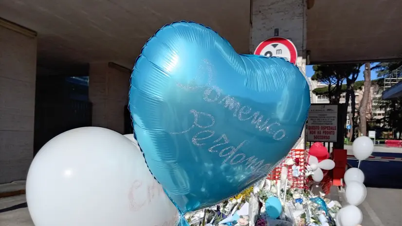 NAPOLI, 22 FEB - Cittadini comuni, coppie di giovani fidanzati, padri con figli al seguito si stanno radunando all' esterno dell' ospedale Monaldi di Napoli per rendere omaggio al piccolo Domenico, il bimbo morto ieri a cui due mesi fa è stato trapiantato un cuore danneggiato. C'è chi lascia fiori con bigliettini di affetto, chi si ferma solo a pregare, chi scuote il capo incredulo davanti al dramma che si è consumato. Una ciclista non trattiene le lacrime. Al momento regna un silenzio irreale in una calda domenica assolata, interrotto solo dalle auto del personale che va a prendere servizio. Tanti i palloncini - spicca uno blu con la scritta 'Domenico, perdonaci' - fiori e pupazzetti di peluche che Napoli sta adagiando all'ingresso dell'ospedale.