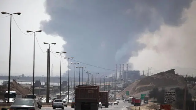 epa12056323 ​Smoke rises from an explosion at the Rajaie port in the city of Bandar Abbas, southern Iran, 26 April 2025. Iranian state media reported on 26 April several injuries in an explosion at the port, but authorities have not yet announced the cause. EPA/Mohammad Rasoul Moradi