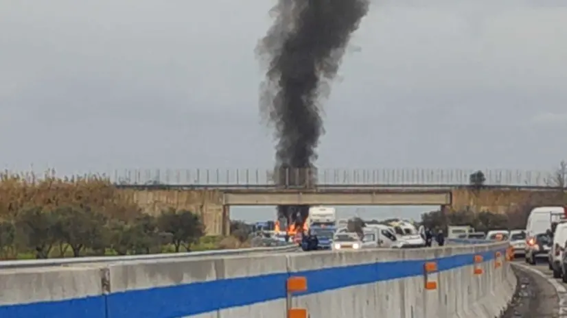 BRINDISI, 09 FEB - I carabinieri del comando provinciale di Lecce hanno eseguito due fermi per l'assalto al portavalori commesso questa mattina sulla superstrada tra Lecce e Brindisi, all'altezza di Tuturano. Gli autori dell'assalto - si vede nelle immagini - hanno bloccato la carreggiata posizionando auto di traverso e poi hanno fatto esplodere il furgone. Dai video registrati dagli automobilisti in transito, si vedono almeno sei persone agire a volto coperto, alcune con indosso tute bianche e imbracciando armi. La rapina, a quanto si apprende, non sarebbe stata consumata. Per fuggire, i malviventi avrebbero poi rapinato dell'auto alcuni automobilisti in transito. La banda avrebbe agito usando auto con lampeggianti, per camuffarle come auto civili in servizio alla polizia.
