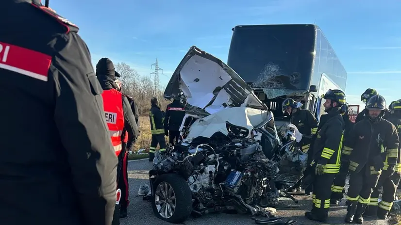 TRIESTE, 09 DIC - Da una prima ricostruzione più dettagliata dell' incidente, sembra che l'auto - una Volkswagen Passat - fosse impegnata nel sorpasso di un mezzo agricolo, un trattore, che non è rimasto coinvolto nella collisione, quando si è scontrata con l'autobus che sopraggiungeva dalla direzione opposta. Lo scontro è stato frontale e nell'impatto la vettura è stata completamente distrutta. Non si esclude che tra le cause dell' incidente ci fosse anche una scarsa visibilità provocata dal sole accecante perché ancora basso a quell'ora sulla linea dell'orizzonte. A bordo dell'autobus, della linea Atap, viaggiavano una quindicina di ragazzi, studenti, e alcuni pendolari. I rilievi vengono svolti dal Nucleo Radiomobile dei Carabinieri di Spilimbergo con i militari di Maniago, e dalla Polizia Locale di Maniago. Sul posto ci sono anche i Vigili del fuoco e i mezzi sanitari del Sores.