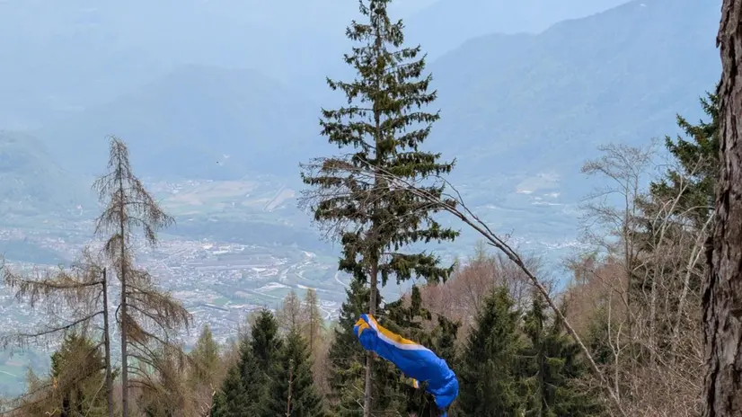 Cade con il parapendio e rimane appesa a un albero a 30 metri da terra