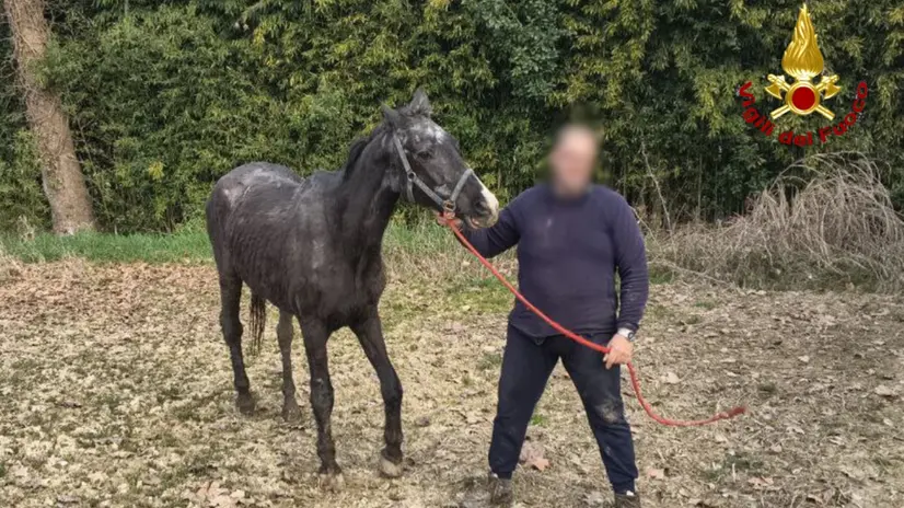 Cade in un fosso, cavallo salvato dai vigili del fuoco