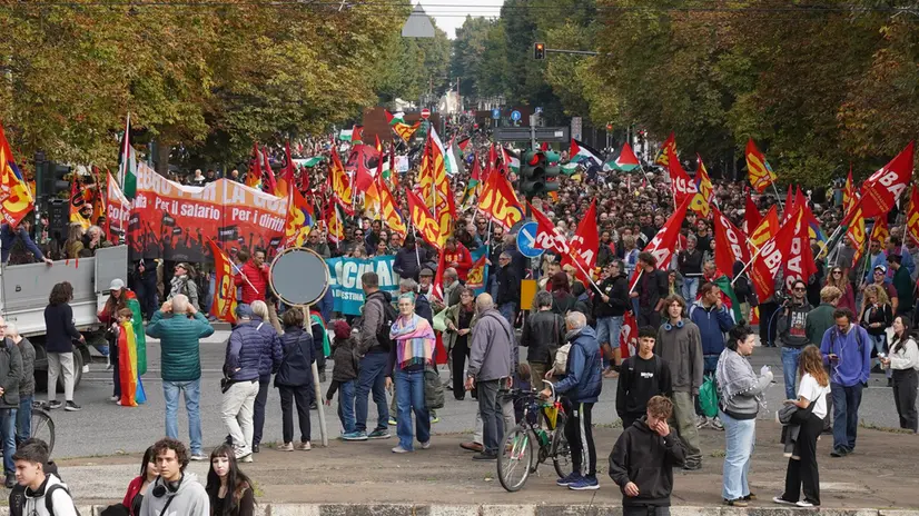 TORINO, 03 OTT - "Oltre 50mila persone in piazza". Questa, secondo il dato fornito dalla Cgil Torino, la partecipazione alla manifestazione per lo sciopero generale per la Palestina e la Global Sumud Flotilla. Il corteo, partito in mattinata al Municipio, sta sfilando in città.