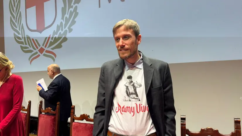 Consigliere dei Verdi agli Ambrogini con maglietta di Ramy