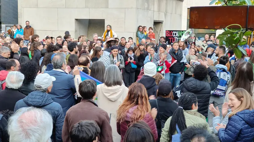 BOLZANO, 02 OTT - Corteo e flashmob di solidarietà alla Freedom Sumud Flotilla e a Gaza questa sera anche a Bolzano. Oltre 300 persone si sono ritrovate in piazza Mazzini, a pochi passi dalla sede Rai, e con slogan e bandiere hanno manifestato la loro vicinanza alla Flottilla, da lì a breve si metterà in moto il corteo per raggiungere l'ospedale di Bolzano, dove alle ore 21 è previsto un flashmob con torce elettriche, lampade e luci per "illuminare simbolicamente la notte di Gaza", così gli organizzatori.
