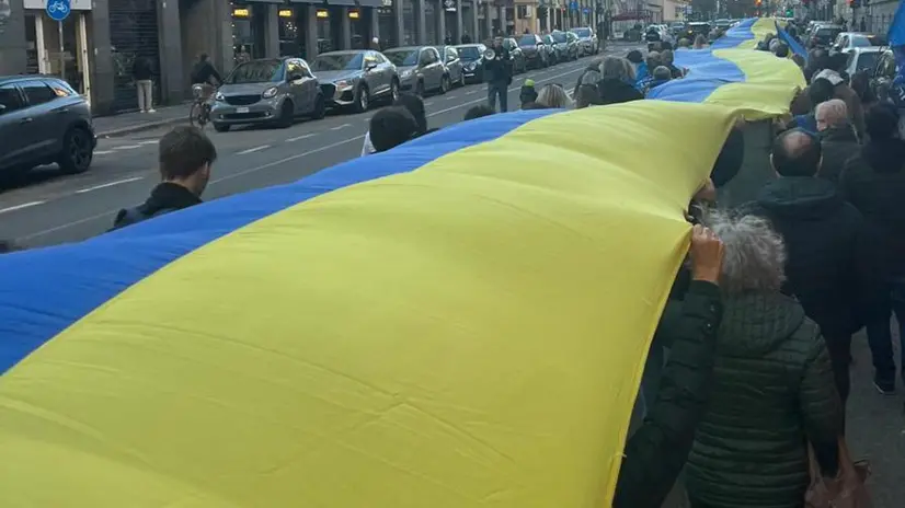 TORINO, 26 OTT - Una bandiera di 50 metri con i colori giallo e blu è stata fatta sfilare oggi per le vie del centro storico di Torino in segno di solidarietà verso l'Ucraina. Circa duecento le persone che hanno preso parte alla manifestazione. All'iniziativa, promossa dalla Cut - Comunità ucraina di Torino, hanno aderito Più Europa, Europa Radicale, Azione, Volt, partito liberaldemocratico. "Mentre a casa risuonano le sirene - hanno detto gli organizzatori - e i nostri cari vivono senza luce, senza calore e senza pace, noi scendiamo per le strade di Torino per dire che l'Ucraina è viva". Igor Boni, di Europa radicale, ha rilanciato l'appello - già presentato lo scorso 21 ottobre in Senato - per uno 'scudo antimissile' per l'Ucraina.