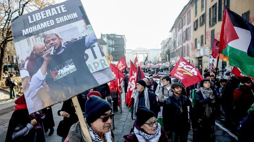 MILANO, 29 NOV - È partito a Milano il corteo Pro Palestina in occasione della Giornata internazionale di solidarietà con il popolo palestinese che ricorre oggi. La manifestazione, organizzata da una serie di sindacati, associazioni per la pace e antagoniste reca in testa uno striscione che recita "Libertà per Shahin, la solidarietà alla Palestina non si processa" con riferimento alla vicenda dell'imam di Torino Mohamed Shahin, che si trova nel Cpr di Caltanissetta in attesa di venire espulso. "Ma quale pace, la strage in Palestina continua tutti i giorni" e "lottare contro l'economia di guerra significa lottare anche per la Palestina" sono tra gli slogan che animano il corteo Pro Palestina in corso oggi pomeriggio a Milano in occasione della Giornata internazionale in solidarietà al popolo palestinese. I manifestanti, tra i 3 e i 5 mila, partiti da piazzale XXIV maggio per arrivare in piazza Fontana, alla spalle di piazza del Duomo