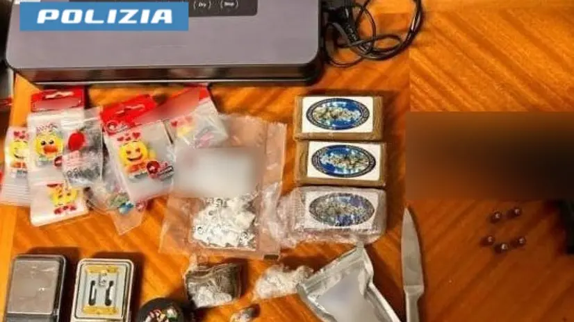 MILANO, 31 OTT - Nascondeva 11 grammi di cocaina e oltre tre etti e mezzo di hashish, ma anche 5 ordigni artigianali dal peso complessivo di oltre un chilo e mezzo, nella pizzeria di Cormano di cui è titolare: per questo la Polizia di Stato nei giorni scorsi ha arrestato un italiano di 24 anni, indagato anche per porto abusivo di armi. I poliziotti del Commissariato Monforte Vittoria sono risaliti alla pizzeria come possibile nascondiglio di droghe di vario tipo. La sera del 29 ottobre hanno controllato il locale di via Vespucci e il 24enne che ha dichiarato di essere il titolare della pizzeria: in un cassetto sotto il registratore di cassa sono stati trovati 18 grammi di hashish, in un armadietto sotto il bancone cinque proiettili calibro 7,65 mm e, in un armadietto vicino ai servizi igienici, un altro involucro con 36 grammi di hashish. All'interno del garage di pertinenza della pizzeria, sono state poi scoperte e sequestrate venticinque bustine contenenti 11 grammi di cocaina, tre panetti da un etto ciascuno di hashish, altri 11 involucri con 26 grammi di hashish, un bilancino di precisione e materiale per il confezionamento, e, inoltre, i 5 ordigni artigianali. Nell'auto, infine, è stata rinvenuta e posta sotto sequestro una pistola stordente taser. Successivamente è giunto sul posto un equipaggio della Sezione Artificieri dell'Ufficio Prevenzione Generale della Questura di Milano che ha proceduto alle operazioni di rimozione dei materiali esplosivi rinvenuti per la successiva distruzione. Nell'udienza svoltasi ieri mattina, l'arresto è stato convalidato e il 24enne è stato portato a San Vittore.