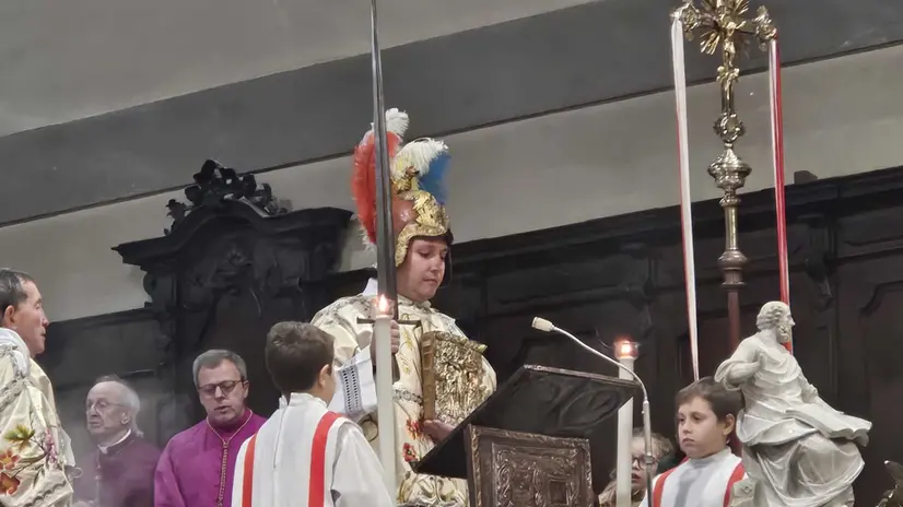 CIVIDALE DEL FRIULI, 06 GEN - E' stata celebrata oggi la solenne Messa dello Spadone, celebrazione che da 659 anni si svolge il giorno dell'Epifania, rito unico nel mondo cattolico, celebrato nella Basilica di Santa Maria Assunta, che intreccia fede, storia e identità civile, rievocando la coesistenza del potere spirituale e temporale alle origini del Patriarcato di Aquileia. La celebrazione prende il nome dallo spadone patriarcale, lo stocco appartenuto al patriarca Marquardo von Randeck, che nel 1366 entrò in città. Durante la liturgia, recitata e cantata in latino secondo l'antica tradizione aquileiese -cividalese, la spada è brandita dal diacono in più momenti verso il clero e i fedeli, non come gesto di benedizione ma di saluto, in simbolico equilibrio tra autorità religiosa e civile. Il parroco monsignor Livio Carlino, che ha officiato la messa, nell'omelia ha messo in guardia contro i "novelli messia" e le verità usate per rafforzare il potere, denunciando l'illusione che la pace possa essere garantita dal riarmo. "Solo il disarmo reale, ha detto può aprire la strada a dialogo e riconciliazione, mentre nazionalismo e giustificazione della violenza sono una vera e propria blasfemia". Toccato anche il tema della sanità pubblica, ricordando l'impegno di chi ha difeso il presidio ospedaliero locale e testimoniando luci e ombre del sistema sanitario. L'auspicio è che le strutture "diventino sempre più luoghi di accoglienza e umanità, mettendo al centro la persona, soprattutto il povero e il fragile". Come da tradizione, alla funzione religiosa è seguita la rievocazione storica dell'ingresso del Patriarca a Cividale: un corteo medievale, con centinaia di figuranti.
