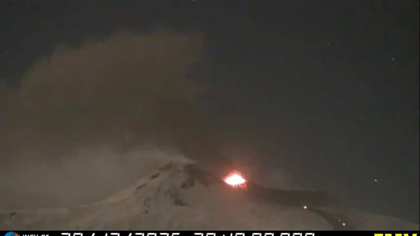 CATANIA, 28 DIC - Continua sull'Etna una vivace attività stromboliana alla bocca apertasi il 27 dicembre sull'alto fianco orientale del cratere Voragine, che ha generato frequenti emissioni di cenere, alimentando una nube di cenere spinta dal vento verso il settore occidentale del vulcano. I getti di materiale piroclastico raggiungono altezze fino a 100 metri sopra la bocca. E' quanto emerge dal monitoraggio dell'Istituto nazionale di geofisica e vulcanologia, Osservatorio etneo, di Catania. Il cratere di Nord-Est ha prodotto sporadiche esplosioni durante la notte scorsa, e alcuni sbuffi di cenere nella mattinata odierna, ma al momento non mostra segni di attività da diverse ore. La colata lavica emessa da una bocca alla base orientale della Voragine, che era ancora alimentata all'alba di oggi, al momento sembra essersi fermata, con pochi punti incandescenti lungo il suo percorso. L'ampiezza media del tremore vulcanico ha avuto un andamento quasi stazionario, pur se su valori alti. La localizzazione del centroide delle sorgenti del tremore vulcanico ricade nell'area del cratere di Nord-Est a una quota di circa 2.600-2.900 metri sul livello del mare. L'analisi dei segnali di deformazione del suolo non evidenzia alcuna variazione significativa alle reti di monitoraggio. L'attuale fase eruttiva dell'Etna, nonostante l'allerta per il volo (Vona) rossa, il livello massimo su una scala di quattro valori, non impatta sulla piena operatività dell'aeroporto internazionale Vincenzo Bellini di Catania.