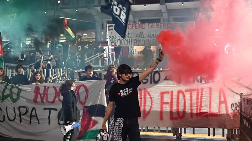 TORINO, 01 OTT - Il corteo del coordinamento Torino per Gaza, composto da oltre duemila persone, è arrivato verso le 23.20 alla stazione di Porta Nuova a Torino. Alcuni manifestanti hanno cercato di entrare, trovandosi davanti un cordone di polizia in tenuta antisommossa. Uno dei manifestanti ha lanciato un bicicletta contro un agente, che è caduto a terra. Sono seguiti anche lanci di oggetti, poi gli agenti li hanno respinti con gli scudi. Altri manifestanti sono intervenuti per cercare di smorzare la tensione. Un ulteriore tentativo di entrare in stazione da via Sacchi è riuscito. A entrare sono stati circa duecento manifestanti, tra cui appartenenti all'area antagonista dei centri sociali. Alcuni di loro si sono coperti il volto entrando in stazione e sono andati sulle banchine e sui binari. La gran parte del corteo è rimasta fuori, su corso Vittorio Emanuele II e in piazza Carlo Felice, dove il traffico ha risentito della manifestazione.