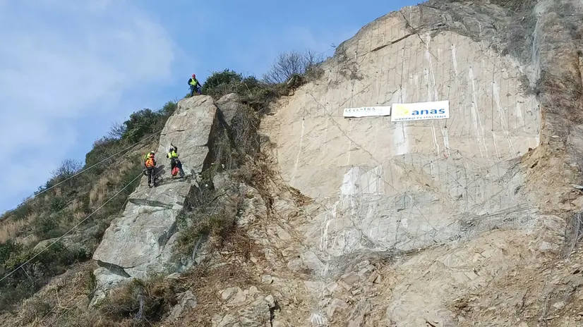 GENOVA, 13 FEB - Trecento chili d'esplosivo sono serviti per far esplodere un 'masso ciclopico' da 2.000 tonnellate alto come un palazzo di quattro piani in bilico sulla parete di roccia franata il 25 gennaio scorso sulla statale Aurelia tra Vesima e Arenzano nel ponente di Genova. L'operazione, eseguita da personale specializzato per il disgaggio di massi pericolanti, è stata effettuata nel primo pomeriggio d'intesa tra Anas, Aspi, Regione Liguria e i Comuni interessati. Durante le operazioni di disgaggio la circolazione ferroviaria Genova-Ventimiglia è rimasta sospesa tra Voltri e Cogoleto con la cancellazione di otto treni regionali. L'autostrada A10, unica alternativa all'Aurelia, è invece rimasta regolarmente aperta per garantire almeno una via di collegamento tra il ponente ligure e il levante della regione. All'operazione erano presenti, tra gli altri, il viceministro delle Infrastrutture Edoardo Rixi, l'assessore regionale alle Infrastrutture Giacomo Giampedrone, il sindaco di Arenzano Francesco Silvestrini, l'amministratore delegato di Anas Claudio Gemme e il responsabile della struttura territoriale di Anas Liguria Nicola Dinnella. Le cariche sono state disposte dai rocciatori in punti prestabiliti e individuati per distaccare i volumi rocciosi da eliminare: il masso pericolante aveva dimensioni di oltre 720 metri cubi con un peso di circa 2.000 tonnellate. "Oggi siamo qui per il primo intervento importante di messa in sicurezza della strada - dichiarato l'ad di Anas Claudio Gemme - il masso, con dimensioni pari a un palazzo di quattro piani, rappresentava un rischio per la sicurezza pubblica e le infrastrutture circostanti". L'esplosione è propedeutica alla riprofilatura della la parete di roccia dove nei prossimi mesi Anas farà un intervento mirato a mitigare e prevenire il dissesto idrogeologico. L'obiettivo è comunque riaprire la strada Aurelia, almeno su una corsia, il 1 marzo.