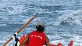 TORRE DEL LAGO (LU) 04 LUGLIO 2002 UN BAGNINO ENTRA IN MARE PER UN SOCCORSO