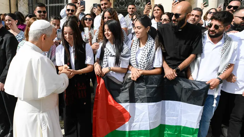 CITTÀ DEL VATICANO, 01 OTT - Un gruppo di giovani, che fanno parte della Gioventù di Gesù in Palestina, movimento che riunisce i bambini, gli adolescenti e i gruppi giovanili di tutte le parrocchie del Patriarcato di Gerusalemme dei Latini, hanno incontrato Papa Leone al termine dell'udienza generale a Piazza San Pietro. Hanno vissuto il loro Giubileo dei giovani: "Dovevano essere a Tor Vergata in agosto ma, non avendo ottenuto in tempo il visto per la Giordania, non sono potuti partire", ha affermato all'Osservatore Romano padre Luis Salman, parroco di Beit Sahour e assistente spirituale dei ragazzi, che ha accompagnato il gruppo insieme con il direttore vocazionale del Patriarcato di Gerusalemme dei Latini, padre Abdallah Dababneh. Quest'ultimo ha raccontato come alcuni giovani stiano vivendo "in questi giorni quella libertà che dovrebbe essere la normalità e che li renderà più consapevoli al ritorno a casa". "Siamo ragazzi e ragazze pieni di speranza e per questo ci sentiamo forti, nonostante le sofferenze. Vogliamo rimanere in Terra Santa perché quella è la terra di Gesù, e sentiamo che questa è la nostra missione, soprattutto in questo momento così doloroso e tragico", ha detto Faten Isayed, segretaria generale dell'organizzazione.