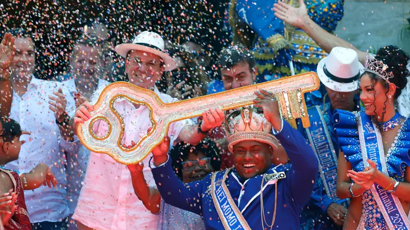 RIO DE JANEIRO, 13 FEB - Il sindaco Eduardo Paes ha consegnato le chiavi della città al Re Momo Danilo Vieira, aprendo ufficialmente il Carnevale di Rio de Janeiro 2026. La cerimonia si è svolta nel palazzo di rappresentanza del municipio. Il Re Momo è la figura simbolica che, secondo la tradizione, "governa" la città durante i giorni di festa. Introdotto nel 1933 come personaggio di cartapesta, dall'anno successivo il ruolo fu affidato a una persona in carne e ossa. Da quell'anno, per ogni carnevale un nuovo 'sovrano' è scelto nel corso di una selezione insieme a una 'corte'. Nella mitologia greca Momo è il dio della burla e dell'irriverenza. Dal 2024 un decreto municipale rende obbligatoria la cerimonia di consegna delle chiavi, per assicurarne la continuità negli anni. Cresce intanto l'attesa per l'inizio delle sfilate delle celebri scuole di samba del gruppo speciale, previste per domenica, lunedì e martedì al Sambódromo, in quello che è considerato il più grande spettacolo a cielo aperto del mondo. Per l'edizione 2026 il municipio stima un afflusso di circa 8 milioni di persone tra sfilate al Sambódromo e alla Intendente Magalhães, blocchi di strada, balli popolari ed eventi tradizionali in centro. L'impatto economico atteso per la città è di circa 950 milioni di euro (5,9 miliardi di real).