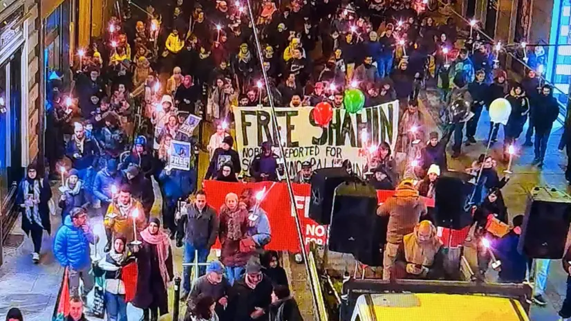 TORINO, 27 NOV - Scandendo ad alta voce in coro la richiesta "Free free Shahin", a Torino 400 persone sono partite in corteo dalla centrale Piazza Castello in direzione della via Pietro Micca. Alla testa del serpentone illuminato dalle fiaccole compare un grande striscione sul quale si legge: "Free Shahin Nobody Deported For Supporting Palestine'. La fiaccolata che sta attraversando il centro di Torino è stata organizzata in solidarietà e contro l'arresto di Mohamed Shahin, il 47enne imam della moschea di via Saluzzo, di origini egiziane ma in Italia da vent'anni, espulso perché ritenuto dalle autorità di polizia "una minaccia concreta, attuale e grave per la sicurezza dello Stato". L'accaduto, diventato un caso politico, vede le opposizioni sulle barricate per chiedere al governo di bloccare l'iter verso il rimpatrio. Shahin attualmente si trova nel Cpr di Caltanissetta. In quanto oppositore di Al Sisi, ritiene di correre un grave pericolo in caso di rimpatrio e ha presentato domanda per il riconoscimento della protezione internazionale.