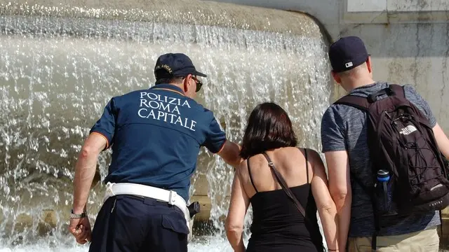 ROMA, 27 AGO - Erano da poco passate le 17.00 di ieri pomeriggio, quando gli agenti della Polizia Locale di Roma Capitale, impegnati nei quotidiani servizi di vigilanza nell'area di Piazza di Trevi, hanno individuato e fermato una donna intenta ad entrare all'interno della fontana monumentale, immergendo entrambe le gambe. La responsabile, un'italiana di 50 anni, è stata sanzionata per circa 450 euro, secondo quanto stabilito dal Regolamento di Polizia Urbana, oltre all'applicazione della misura dell'ordine di allontanamento.