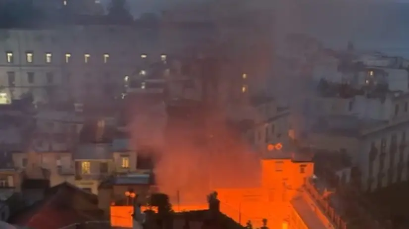 NAPOLI, 17 FEB - Incendio nel cuore di Napoli, in via Chaia: le fiamme hanno coinvolto il teatro Sannazzaro. I vigili del fuoco sono sul posto e alcune persone sono rimaste intossicate dal fumo. Al momento sembra sia andata distrutta la cupola del teatro e danni si sarebbero verificati anche ai palazzi adiacenti.